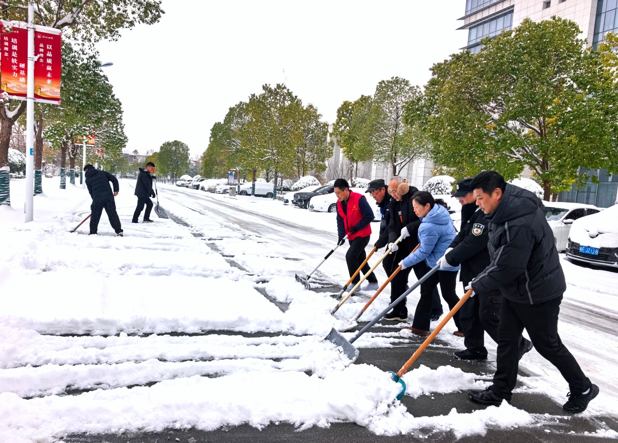 飞花瑞雪翩然而至,百里矿区遍披银装,在增添诗意的同时,也为广大职工的日常通行带来了诸多不便与安全隐患。为畅通道路、护航平安,淮北矿业集团各单位组织开展铲雪除冰保安全志愿服务活动。寒风凛冽中,办公楼前、厂房门口、主干道旁,志愿者们挥锹铲雪、合力破冰、细致清扫,汗水融化了冰雪,热情驱散了严寒,一条条清洁畅通的道路逐渐显现,职工们的出行安全得到了切实保障。