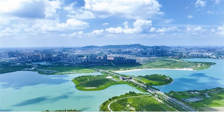 2025年,淮北矿业集团持续完善系统科学的采煤沉陷区治理框架。截至目前,该集团系统修复6处采煤沉陷区,治理连片沉陷水面7000余亩,形成总面积2.1平方公里的湿地。图为安徽省淮北市中湖生态湿地公园。(王盟)