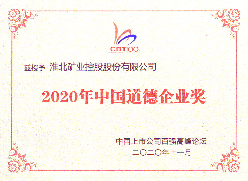 11月28日,“第二十届中国上市公司百强高峰论坛”在北京举行,该论坛由中国上市公司百强高峰论坛组委会、华顿经济研究院主办。淮北矿业以优异的经营业绩和良好的社会形象,获评2020年“中国百强企业奖”“中国道德企业奖”“中国百强优秀董秘奖”三项大奖。