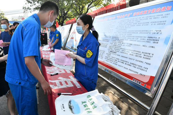 淮北选煤厂牢固树立“绿水青山就是金山银山”的理念,通过持续提升环境治理水平、举办“绿色大讲堂”、开展环保法律法规进班组宣讲等多种方式,营造“绿色淮选,美丽有我”的浓厚氛围。图为6月4日,世界环境日前夕,该厂开展环保签名活动,向干部职工发放环保手册、宣传单,号召大家环保从我做起。(撰稿:丁洋洋 审核:孟昭香)