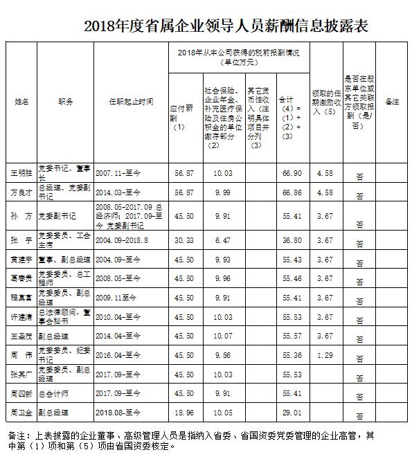 淮北矿业集团2018年度省属企业领导人员薪酬信息披露表