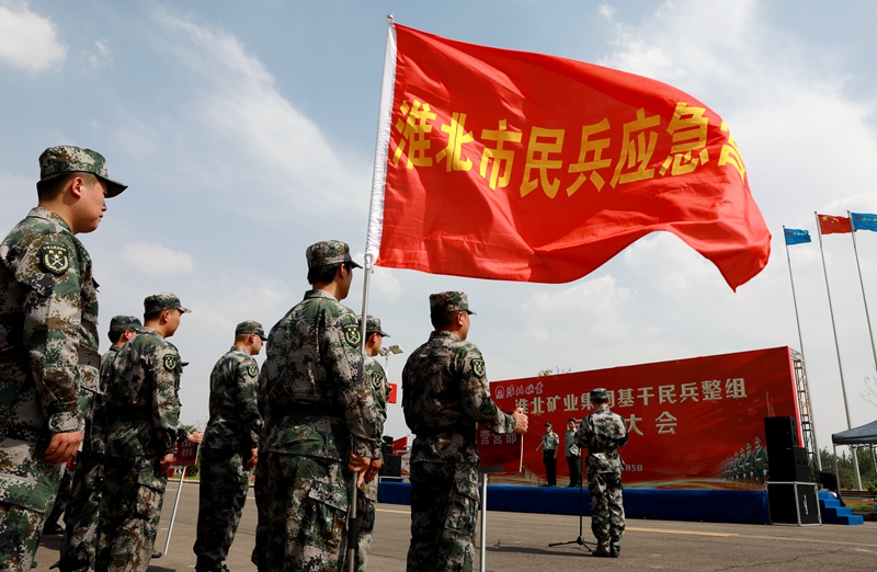 在点验大会上,淮北矿业集团党委宣传部(统战部、武装部)负责人宣读了安徽省淮北军分区新调整民兵干部任职命令。全体民兵面对鲜艳的国旗庄严宣誓:随时响应国家号令,参军参战,支援前线,英勇顽强,不怕牺牲,坚决完成任务,永不背叛祖国。