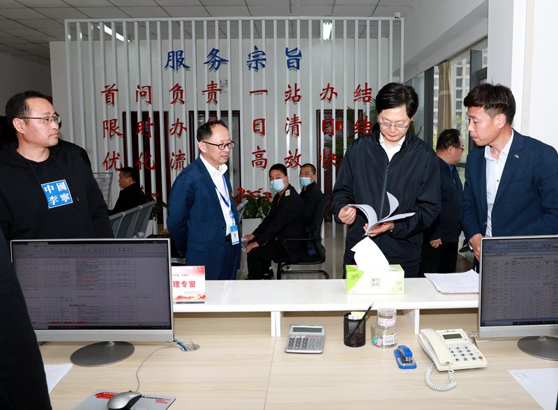 在方良才、葛春贵、周四新、刘杰等淮北矿业集团领导陪同下,巡回指导组深入淮北矿业集团快捷综合服务中心、公积金中心办证大厅,朱庄矿党员说事室、“学习强国”线下体验馆、综掘一区党支部进行现场督导。