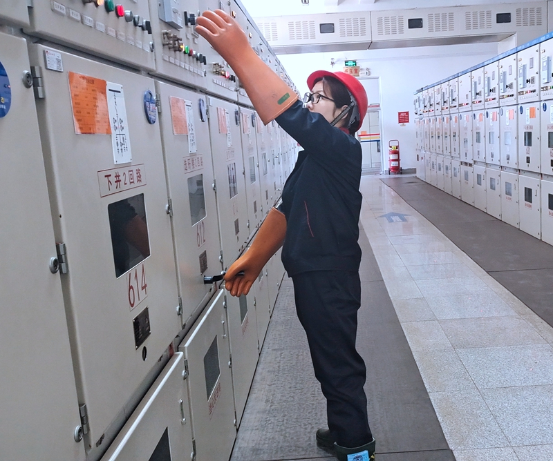 保运区变电所女工谢妍妍检测高压供电设备