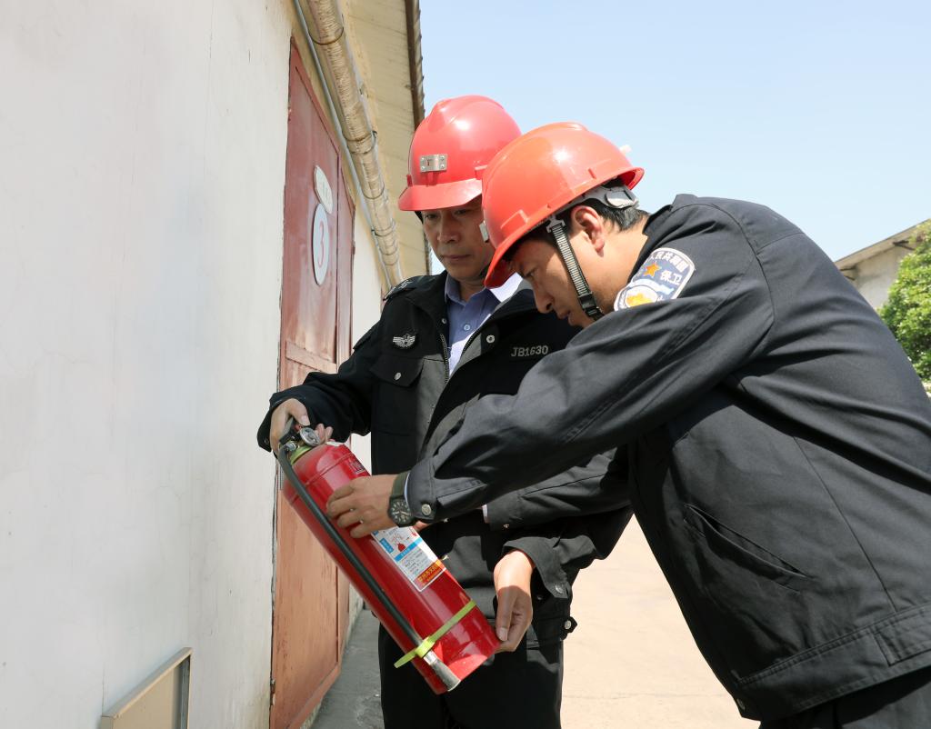 物业公司职工程永、陈燕飞检查消防设施。“节日期间的消防安全尤为重要,越是放假了,我们越是要加大巡查力度,坚决杜绝消防隐患。”(陈闯 王文东)