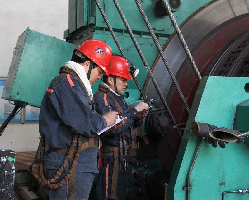 机电工在精益求精的检修验绳