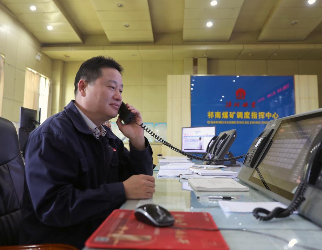 调度员余勇敢正在接听井下生产电话。“要严格落实矿主要领导的要求,淡化节日氛围,抓好安全生产,我们是矿安全生产的中枢,更是不能有丝毫大意。”