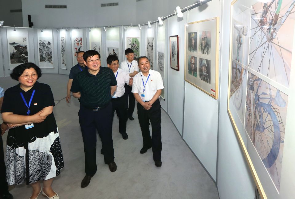 6月29日,由淮北矿业集团工会、淮北矿区文联主办的“永远跟党走”庆祝中国共产党成立100周年职工美术作品展,在职工艺术馆开幕。不同画种的53幅佳作,组合成多彩的画卷,见证着党领导文艺所结出的丰硕成果。淮北矿业集团党委常委、纪委书记汪琳,工会第一副主席刘杰到美术展现场观看指导。