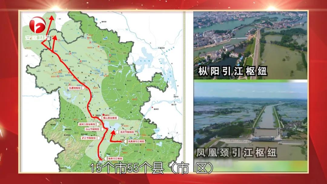 工程供水范围涉及安徽、河南2省15个市55个县(市、区),输水线路总长723公里,总面积7.06万平方公里,批复总投资949.15亿元。其中安徽省供水范围涉及13个市46个县(市、区),总面积5.85万平方公里,总投资875.37亿元。工程采用菜子湖线和西兆河线双线引江,设计引江规模300立方米每秒,规划到2040年全年引江水量43亿立方米,相当于把2个巢湖的水输送到江淮之间和皖北地区。