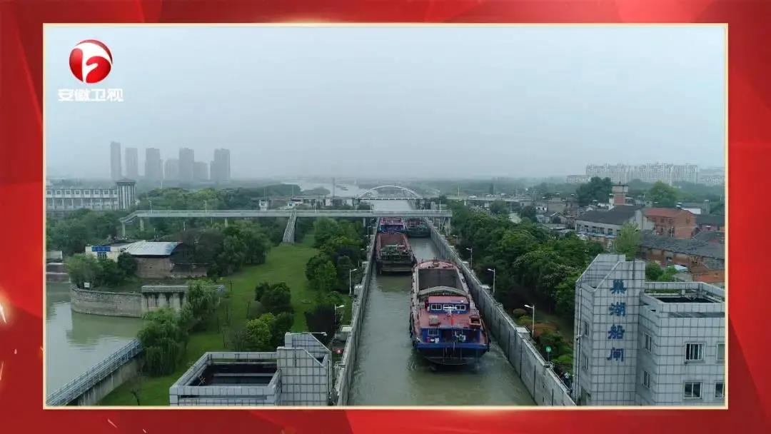 那它的效果到底如何呢?这里是巢湖船闸,现在有四艘货船正在过闸,以前货轮在过船闸时,需要船员上岸至服务大厅办理通行手续,排队久、程序多,办理一次手续需要一个小时的时间。现在每艘货船都安装了“水上ETC”,船员只需通过手机远程操作,不停船、不上岸,五分钟就能轻松办完过闸手续,极大地缩短了船舶过闸时间。