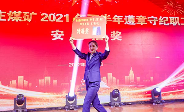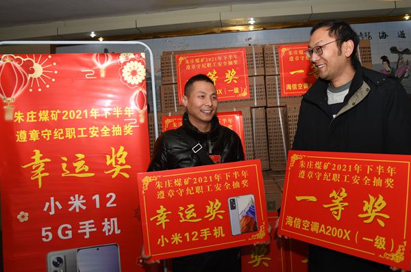 1月27日,朱仙庄矿在安全教育室举办2022年新春联欢会暨2021年下半年无“三违”抽奖活动。