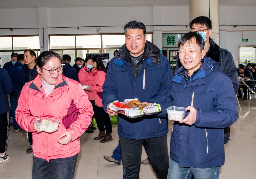 1月25日,铁运处职工端着热气腾腾的水饺和香喷喷的烧鸡喜笑颜开。