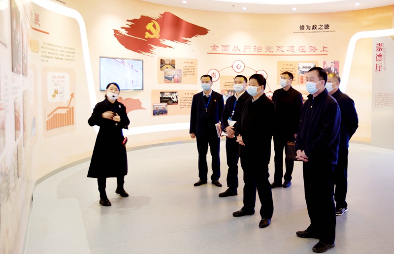 座谈会前,钱界殊一行在邱丹陪同下,参观了淮北矿业集团展厅。