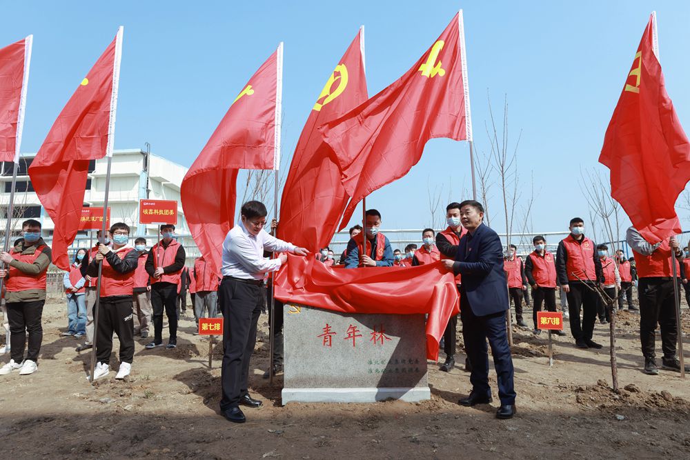 活动期间,团员青年代表现场宣读了倡议书,号召公司广大团员青年争做“两山”理念的“传播者”、生态文明建设的“践行者”、绿色矿山的“守护者”。集团公司工会第一副主席刘杰和临涣矿党委负责人共同为青年林揭牌。