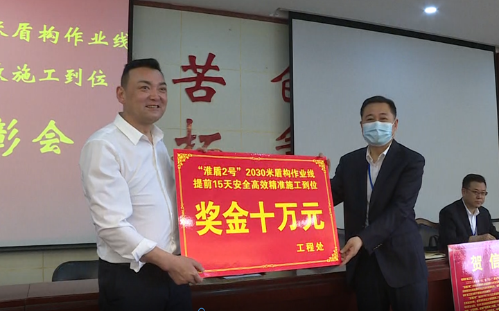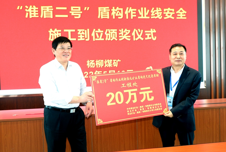 5月10日,对工程处杨柳矿建工区“淮盾2号”盾构队是个喜庆的日子,因其施工的“淮盾2号”2030米盾构作业线在5月1日提前15天安全高效精准施工到位,同时4月份再创盾构月进尺345米新纪录,淮北矿业集团工会第一副主席刘杰一行给工程处和杨柳矿送来喜报和各20万奖励。同样,这一天工程处也给杨柳矿建工区送来了喜报和10万元奖励,两级奖励30万,只为盾构再鼓劲。