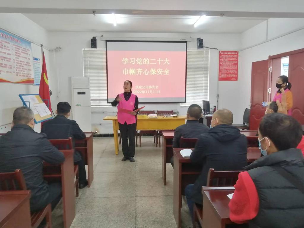 为把党的二十大精神转化为干部职工自觉行动和积极有效的工作措施,立足岗位尽职尽责,坚决打赢安全生产“三步走”目标行动攻坚战,双龙公司用柔性力量护航矿井安全生产,组织巾帼志愿者深入科区开展党的二十大精神宣讲及安全知识征答活动。巾帼志愿者从党的二十大会议盛况、主要成果、二十大报告主要精神进行了深入解读,让大家全面、准确、系统性地领会党的二十大精神。随后开展的安全生产相关知识争答掀起活动的高潮,职工们踊跃抢答,气氛热烈,营造了浓浓的安全氛围。(撰稿:张双侠、郑海珍 审核:赵素萍 )