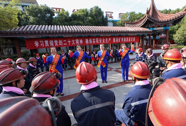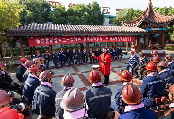“敲大鼓,咚咚响,二十大精神听我讲。二十大,不平凡,党为人民谋发展。”11月4日,淮北矿业集团朱庄煤矿邀请淮北大鼓传承人李红艳来到矿山,利用大鼓这一当地群众喜闻乐见的形式为基层矿工宣讲党的二十大精神。