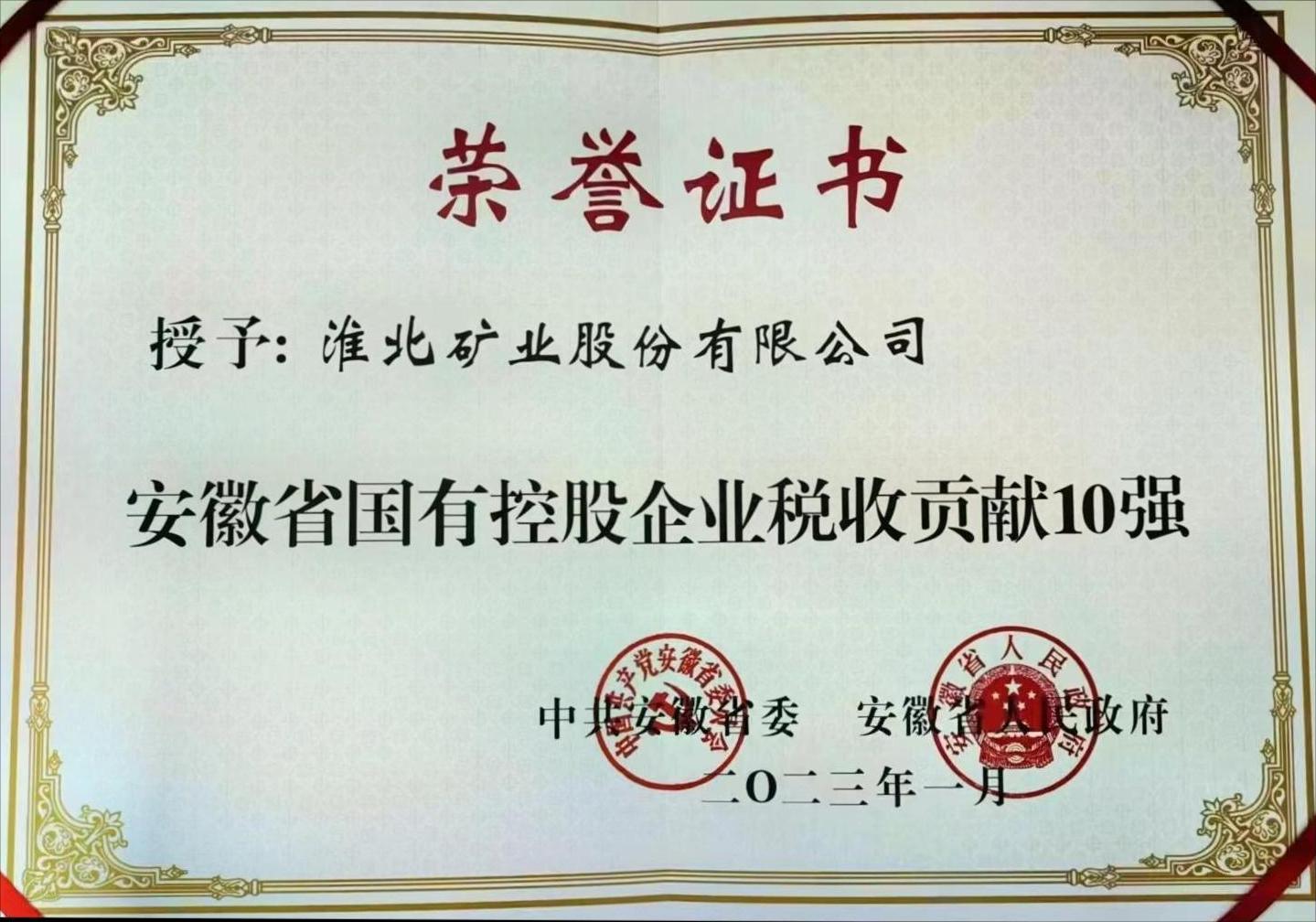 会上,通报表扬了一批省税收贡献突出企业、“专精特新”企业,淮北矿业股份有限公司荣获“安徽省国有控股企业税收贡献10强”称号,省领导为受到通报表扬的企业代表颁奖。淮北矿业集团党委副书记、总经理,淮北矿业党委书记、董事长孙方参加了会议,现场接受表彰。