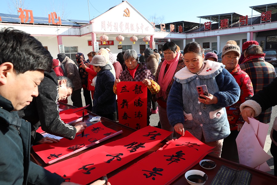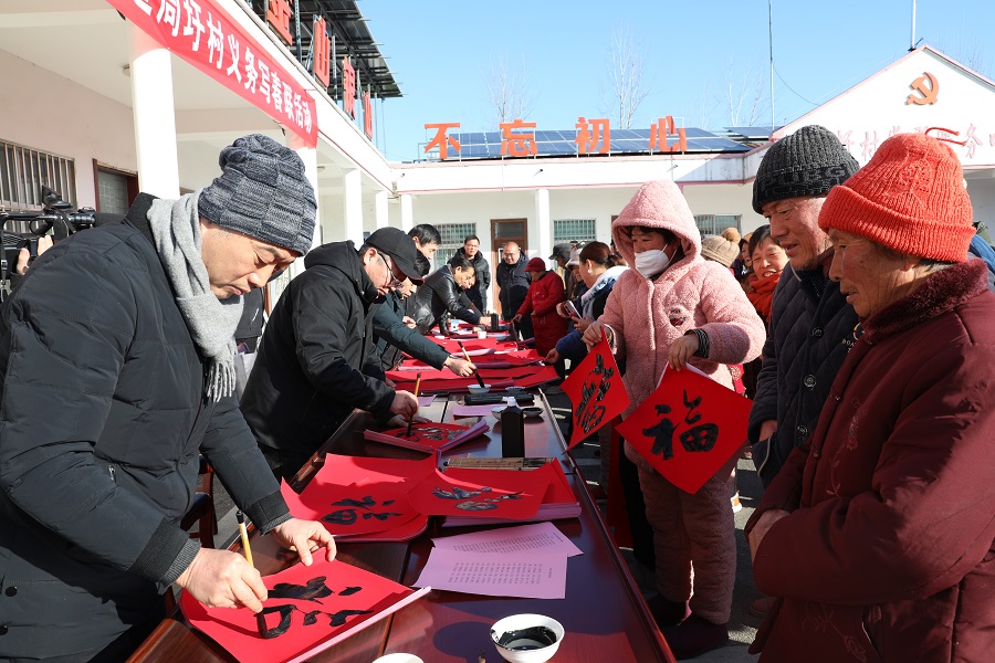 1月23日,淮北矿业集团工会组织矿区书法家深入定点帮扶乡村——濉溪县铁佛镇周圩村,开启新年义务书赠春联系列活动,现场挥毫泼墨“迎新春、话小康、助振兴”,为村民送上新春祝福和美好祝愿,为建设宜居宜业和美乡村,加快乡村振兴汇聚精神力量。