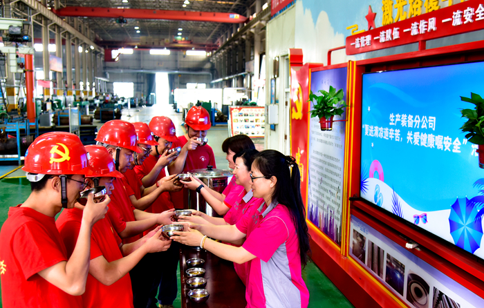 生产装备分公司为车间职工送上清凉解暑的绿豆茶,助力安全生产(赵德强 摄)