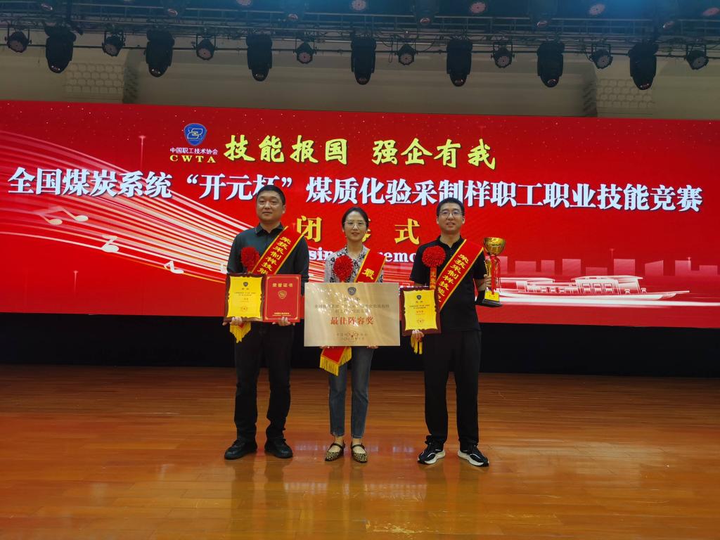 10月18日,在全国煤炭系统“开元杯”煤质化验采制样职工职业技能竞赛闭幕式上,淮北矿业集团煤炭运销分公司凭借团体总分第二名的成绩荣获“最佳阵容奖”。在采制样比赛中,煤炭运销分公司职工黄朋朋以第一名的成绩荣获特等奖。集团公司另有3名职工分别获得一等奖、二等奖和三等奖。
