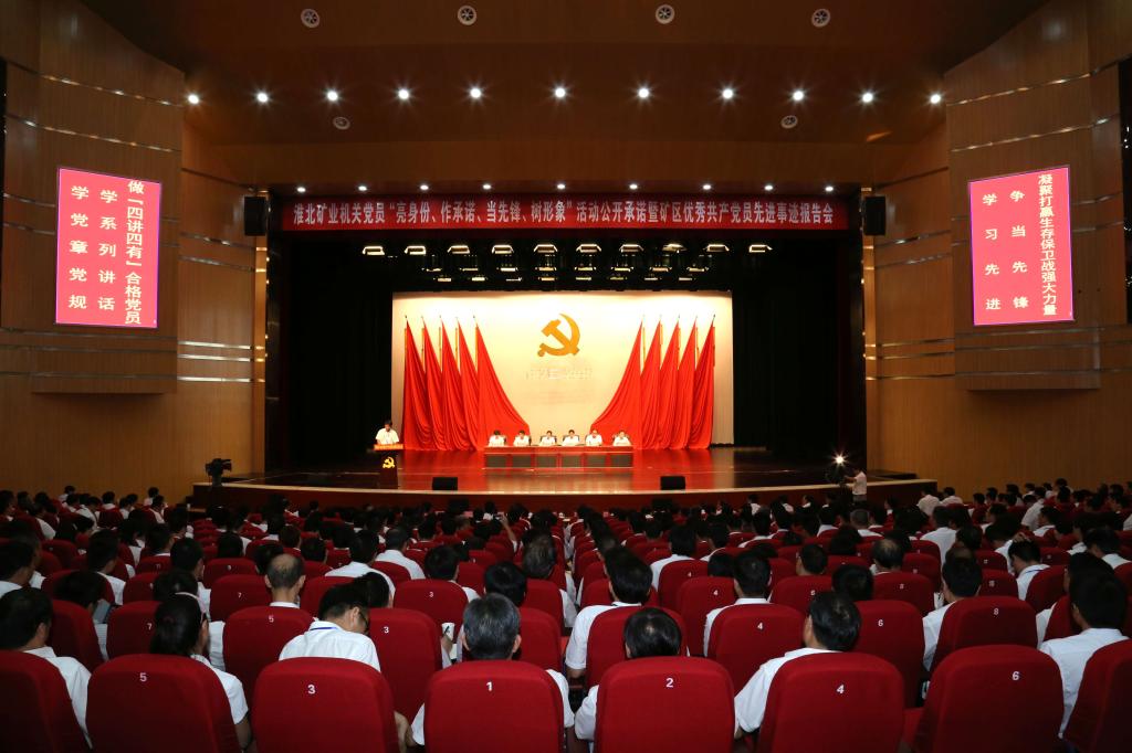 淮北矿业领导袁兆杰、李伟、张宇、黄建宇、葛春贵、孙方、许建清、周伟、刘杰、陈亚东等以一名普通党员的身份一起参加公开承诺,聆听来自基层优秀共产党员先进事迹报告。机关部门全体党员和入驻办公大楼的相关单位的党员参加活动。