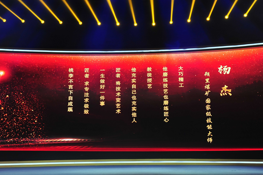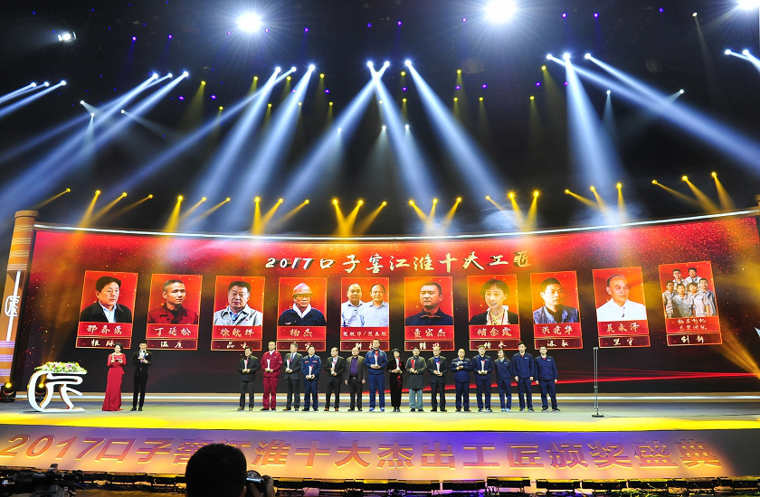 12月16日晚7时40分,安徽省广电中心亚洲一号演播大厅星光灿烂,欢歌飞扬。由安徽省文化厅、安徽省经济和信息化委员会、安徽广播电视台等单位联合举办的首届“江淮十大杰出工匠”在这里盛大颁奖。朔石矿业机电科矿井维修电工、高级技师杨杰被评为“首届‘江淮十大杰出工匠’”。安徽省文化厅、安徽省经济和信息化委员会、安徽广播电视台以及相关单位的领导和各届嘉宾出席颁奖典礼。淮北矿业集团工会副主席刘纪明等作为特邀嘉宾在第一排嘉宾席就座。