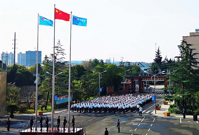 早上8:00,全体参加升旗人员统一着装,在工业广场整齐列队。8:15分,负责升旗的护旗队员们护卫着国旗和淮北矿业旗帜,迈着矫健的步伐走入广场。
