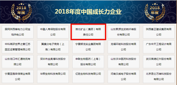 2018年12月28日,从第十六届中国企业发展论坛暨第二届中国企业营商环境峰会传来好消息,淮北矿业集团以优异的发展业绩获评“2018年度中国成长力企业”荣誉称号,位列榜单第三位。