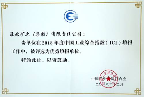 2018年12月28日至29日,中国工业经济年会在浙江嘉兴召开,淮北矿业集团在会上受到表彰,被评为“2018年度中国工业综合指数(ICI)优秀填报单位”,这也是集团公司连续第三年被评为优秀填报单位。