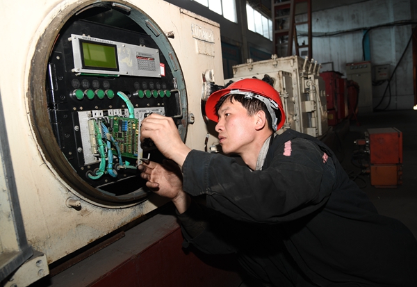 2017年初,许疃矿引进新设备——变频绞车。在变频绞车使用区域,时常出现瓦斯监测传感器误报警现象。当时,身为队长的李卫星经过反复查找资料和请教设备厂家的技术人员,虽然排查出了导致传感器“失灵”的根源,但变频绞车在启动使用时,仍然会对监测信号造成干扰。倔强的李卫星偏不信这个邪,他经过连续多天的奋战,终于攻克了这项技术难题。