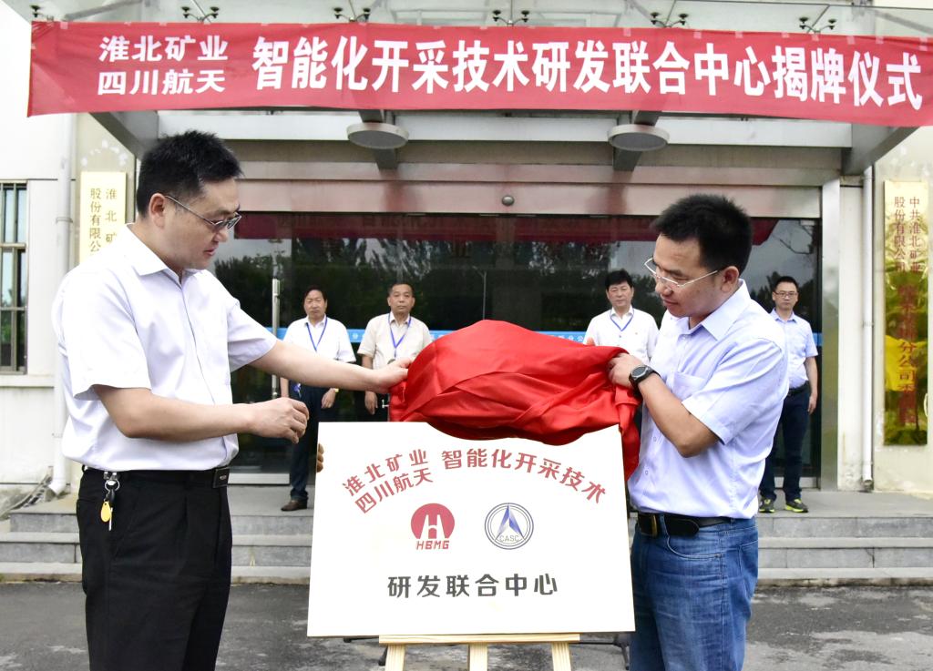 6月20日,淮北矿业、四川航天智能化开采技术研发联合中心揭牌仪式在综采安拆分公司举行。四川航天副总经理赵红、淮北矿业副总经理聂政、综采安拆分公司领导班子成员等出席仪式。