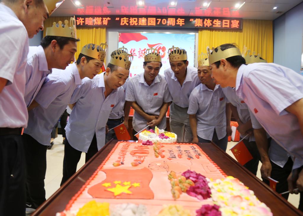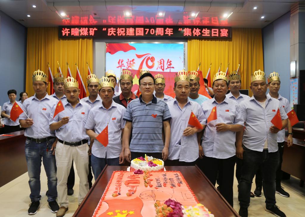 “金秋送爽山河美,丹桂飘香庆辉煌。今天我们欢聚一堂,为祖国母亲成立70周年,为我们10月1日出生的职工庆祝生日,共度欢乐时光……”9月27日上午,许疃矿15名10月1日出生的职工和祖国共庆生。生日蛋糕、生日祝福、生日礼物,一一送给职工们,祝身体健康,工作顺利。一起高唱《今天是你的生日,我的中国》,祝愿祖国繁荣昌盛,更加富强。职工们纷纷表示,今天的幸福生活来之不易,以后会更加立足岗位、奋发有为,为祖国的强大和企业的发展做出自己更大的贡献。