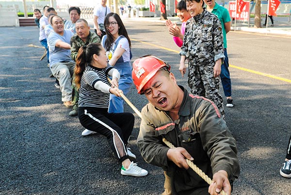 9月27日上午,童亭矿工业广场上,加油声、呐喊声、号子声此起彼伏,在这里正在进行的是庆祝新中国成立70周年系列文体活动。来自该矿各单位的近300名职工,分别参加了齐心协力拔河赛、企鹅接力赛、篮球赛等趣味文体活动,进一步激发干部职工以昂扬向上、奋发有为的精神状态,喜迎新中国70周年华诞的到来。(王莉)