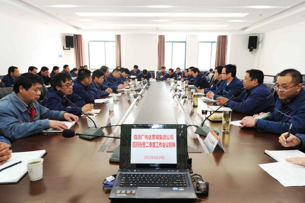 4月14日下午,临选厂召开专题会议传达贯彻淮北矿业四月份暨二季度工作会议精神,旨在进一步认清形势、明确任务、安排部署当前及今后一段时间的重点工作。在家厂领导、机关各部室和基层各单位党政负责人参加了会议。