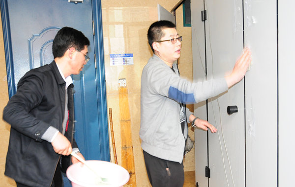 为了达到好的效果,学院组织人事处进行了协调分工,每层楼、每个区域责任到各支部,分片包干;并提前准备了草酸、手套、清洁刷等,要求大家带好扫把、拖把、抹布等工具。