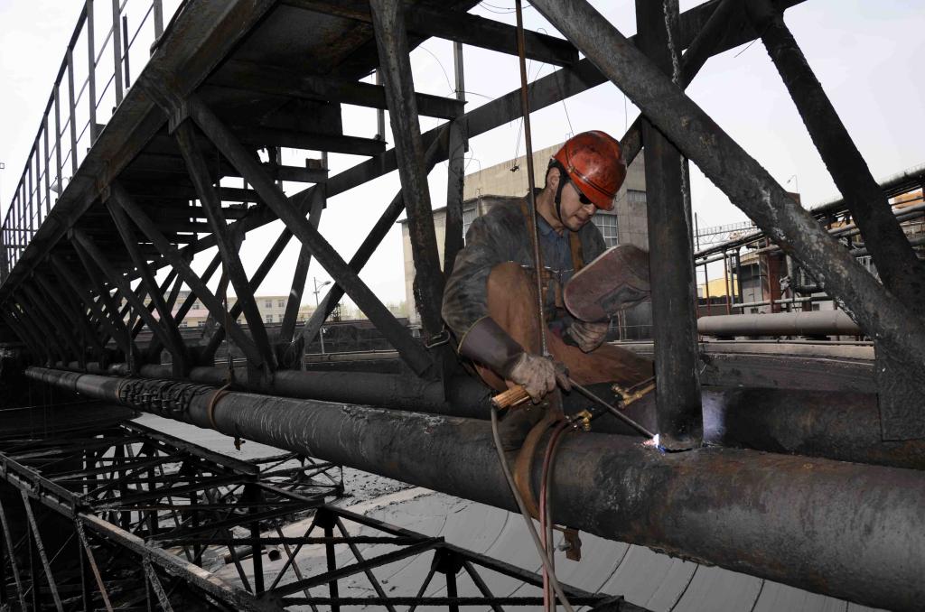 临涣选煤厂把强化机电设备管理作为实现安全高效生产的关键一环,以“设备运转零故障”为目标,严格日常检修维护,定期对设备设施安全性能、运行参数等进行检测调试,确保机电设备安全高效运转。图为该厂职工正在对浓缩池耙子进行检修。