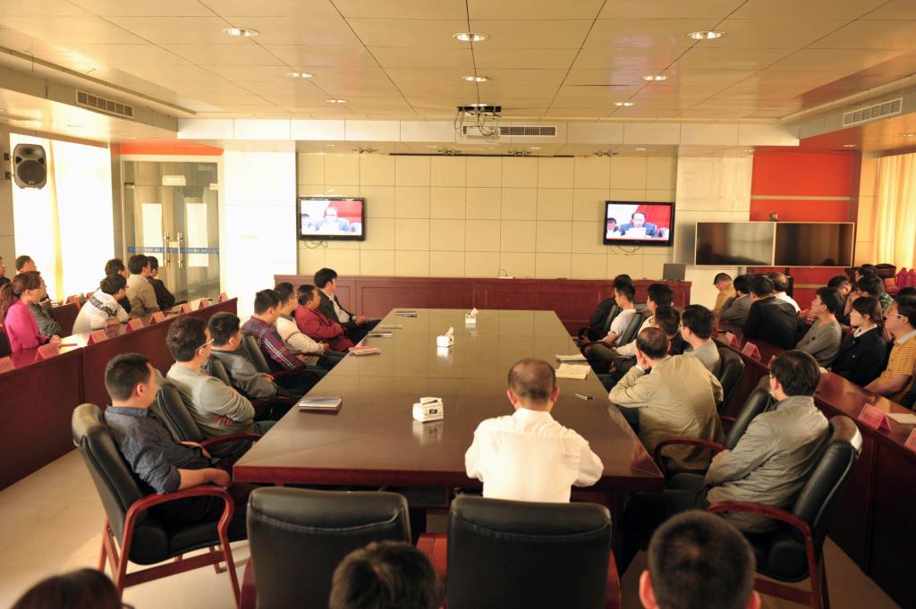 4月28日上午, 袁店一矿组织干部职工集中收看淮北矿业2014年度先进集体、先进个人表彰大会电视直播。(责编 姚春雷)