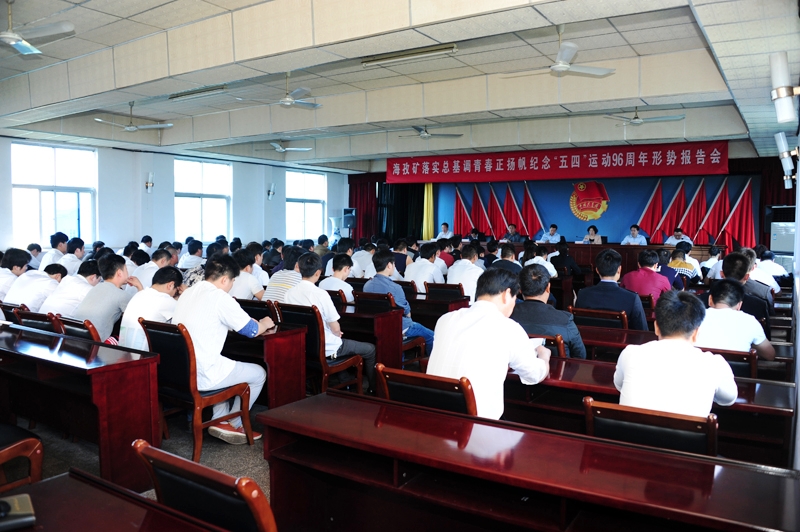 4月30日8点30分,伴随着嘹亮的《淮北矿业之歌》声,海孜矿纪念“五四”运动96周年形势报告会在西四楼会议室如期召开。