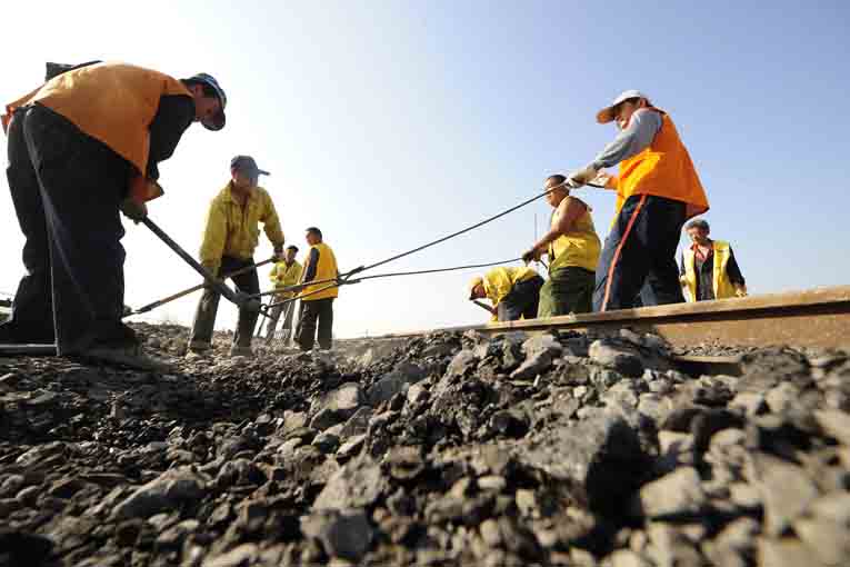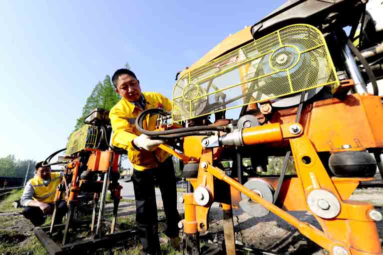 近年来,由于芦岭、朱仙庄塌陷区因矿产量和开采的原因,纷纷进入沉陷活跃期,特别是朱仙庄、王桥、芦岭矿3个塌陷区近4公里的铁路线路,下沉速度频率加快,下沉量大,造成铁路路基下沉,轨道方向、轨距和水平面变化较大,直接危及铁路行车安全。为此,朱仙庄领工区根据坚持轻重缓急的原则,增加塌陷线路巡查频率,密切关注塌陷变化情况,逐个逐项地对塌陷区路段进行有序整治,还采取列车行驶限速、设立防护员、安排巡道工重点巡查等措施,动用机械设备和人工,加强塌陷路段的维护和施工力度,积极做好起拨道、路基捣固、拉轨匀缝、轨平面调整等工序,力争将塌陷区的影响减小到最低,确保矿区铁路运输安全通畅。年初以来,朱仙庄、王桥、芦岭矿三处塌陷线路已分别抬升3米、2.5米、0.8米,回填矸石1.3万吨,道碴1680立方。