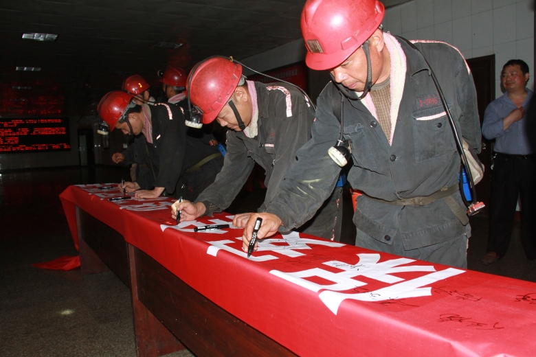 6月2日中午,临涣矿在副井口组织开展“安全生产月”签字仪式,千名干部职在印有“转作风、治隐患、保安全,坚决实现安全年”字样的大红条幅上郑重签名,带头承诺在“安全生产月”期间,自觉遵守安全管理规章制度,杜绝违章指挥、违章作业,落实“两个规范”,强化现场管理,坚决实现安全生产目标。