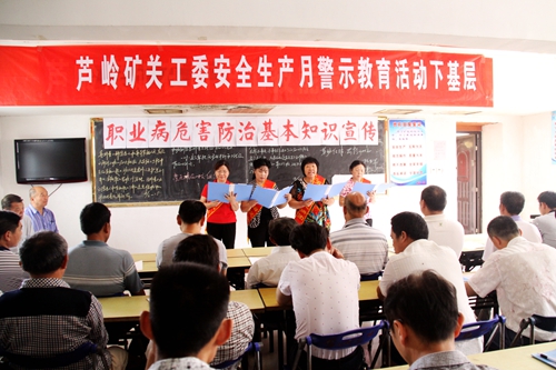 6月19日上午,芦岭矿组织安全宣传教育团深入到采掘区队的职工安全例会上,开展安全月“安全连着你我他”班前安全宣讲活动。