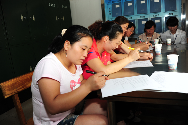 为切实维护女职工权益,发挥女职工代表的监督视察作用,8月5日,矿工会女工部组织部分女职工代表深入到矿灯房班、洗衣机房班进行上岗视察活动,与女职工们就国家“单独二孩”生育政策、《安徽省女职工劳动权益保护征求意见稿》,以及淮北矿业2015年度工会女职工工作专题调查问卷等内容进行座谈讨论。
