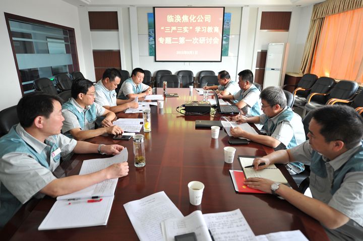 9月1日,临涣焦化公司召开“三严三实”学习教育专题二集中学习第一次研讨会,此次研讨会以“严以律己,严守党的政治纪律和政治规矩,自觉做政治上的‘明白人’”为主题。公司领导王艳功、徐四海、刘文生、李伟、俞锡涌、吴义文、李维维、王朋、汪德才等参加了学习研讨会。研讨会由该公司董事长、党委书记王艳功主持。