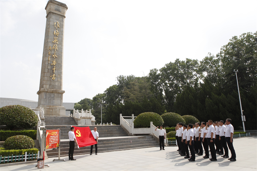 青山处处埋忠骨,何须马革裹尸还。在淮海战役烈士纪念塔前,党员干部们拾级而上,伫立在纪念碑前肃立默哀,深切缅怀为中国人民解放事业英勇献身的革命先烈,追忆老一辈革命家的丰功伟绩。随后,全体党员郑重举起右手重温入党誓词,大家目光坚定,面向鲜红的党旗,怀着深切敬意,用洪亮的声音表达了一名共产党员爱党、爱国、爱人民的坚定决心。铮铮誓言,铿锵有力,把对党忠诚化作勇往直前的强大动力。