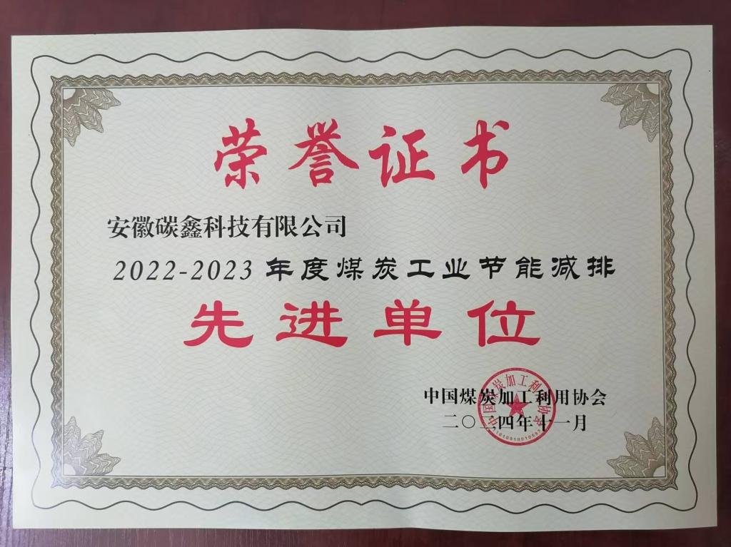近日,自煤炭加工利用协会传来喜讯,碳鑫科技获评“煤炭工业节能减排先进单位”称号。