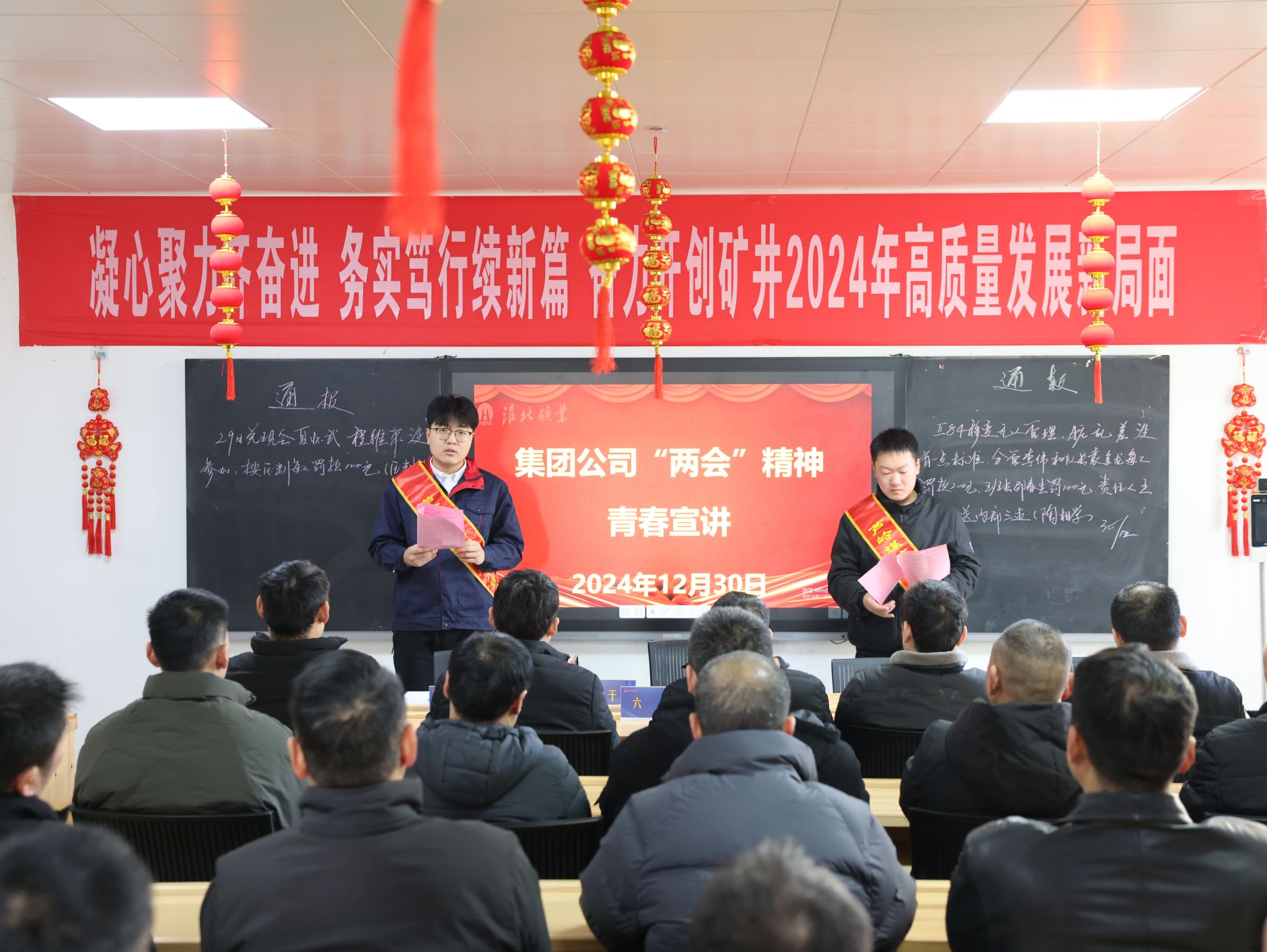 “我们要把学习贯彻集团公司‘两会’精神作为全矿当前的一项重要政治任务……紧紧围绕‘666’年度总体部署,深刻领会、准确把握集团公司‘两会’提出的新目标、新要求、新部署,坚定信心决心,主动认领任务,科学谋划、提早布局明年工作,为2025年矿井高质量发展开好局、起好步……”12月29日早会上,该矿矿长刘彤向全体干群发出的号召。