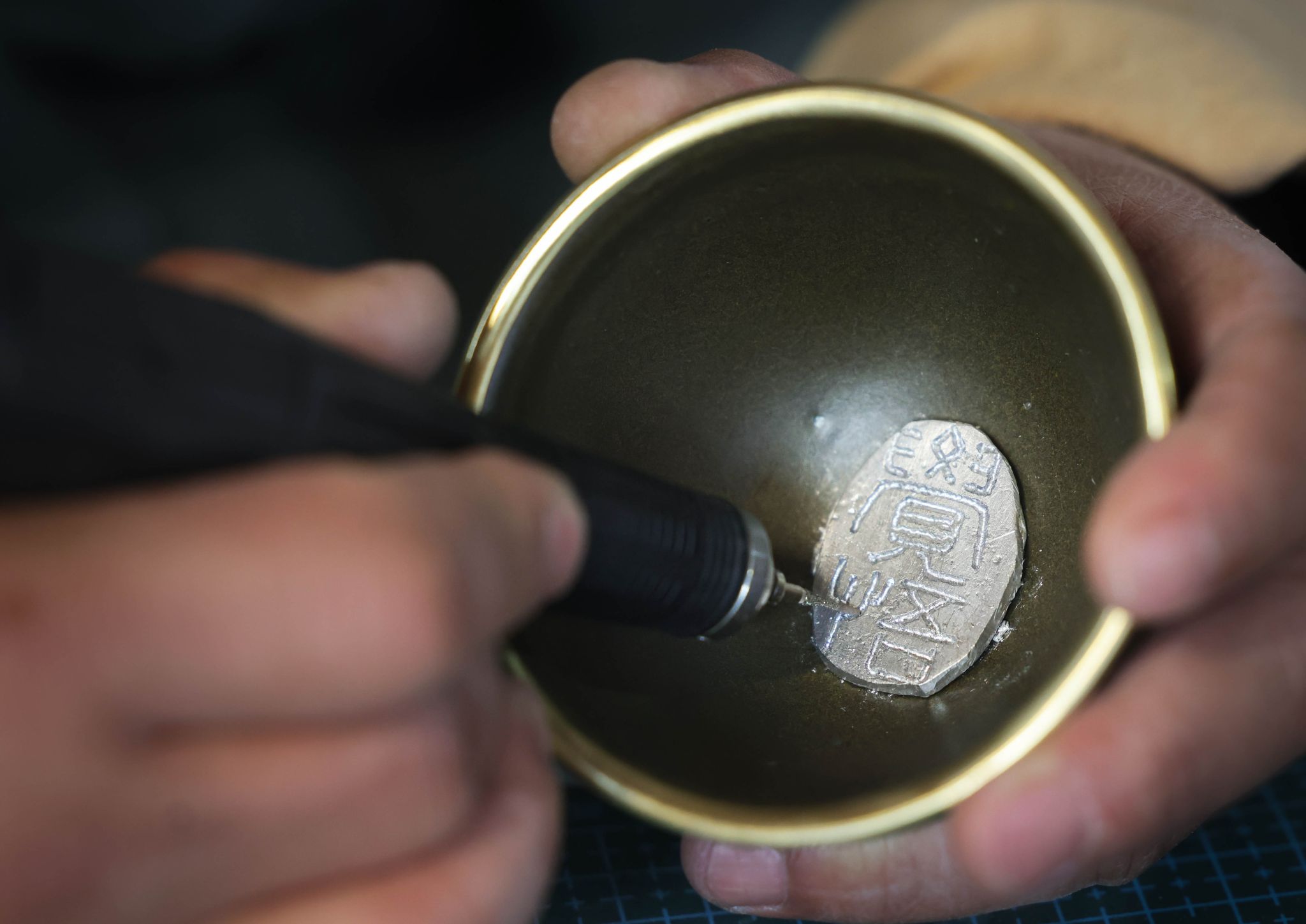 伴随着敲敲打打的声音,张占伟动作娴熟地将一处磕碰缺口的瓷壶,经过细绳绑定、上弓打眼、截铜造锔、扬锤敲锔等10余道工序后,破碎的瓷器“重获新生”。