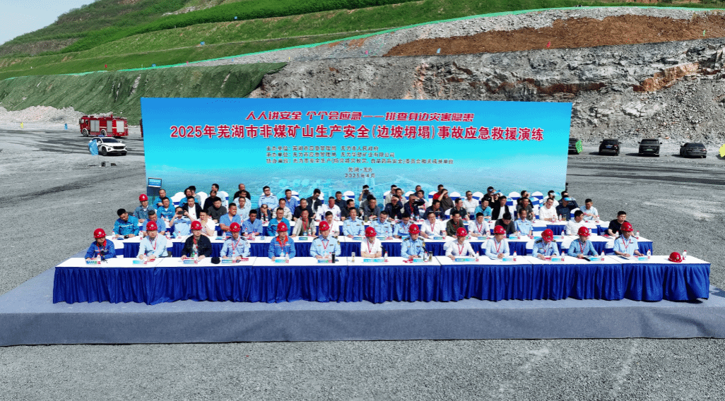 “参演人员就位,演练开始!”4月23日15时,随着应急演练总指挥一声令下,芜湖市非煤矿山生产安全(边坡坍塌)事故应急救援演练在无为华塑矿业有限公司中采区拉开了帷幕。