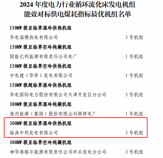 近日,中国电力企业联合会发布2024年度电力行业循环流化床发电机组能效对标优胜机组名单,中利发电公司3号机组荣获“300MW级亚临界湿冷供热机组”5A级优胜机组称号。